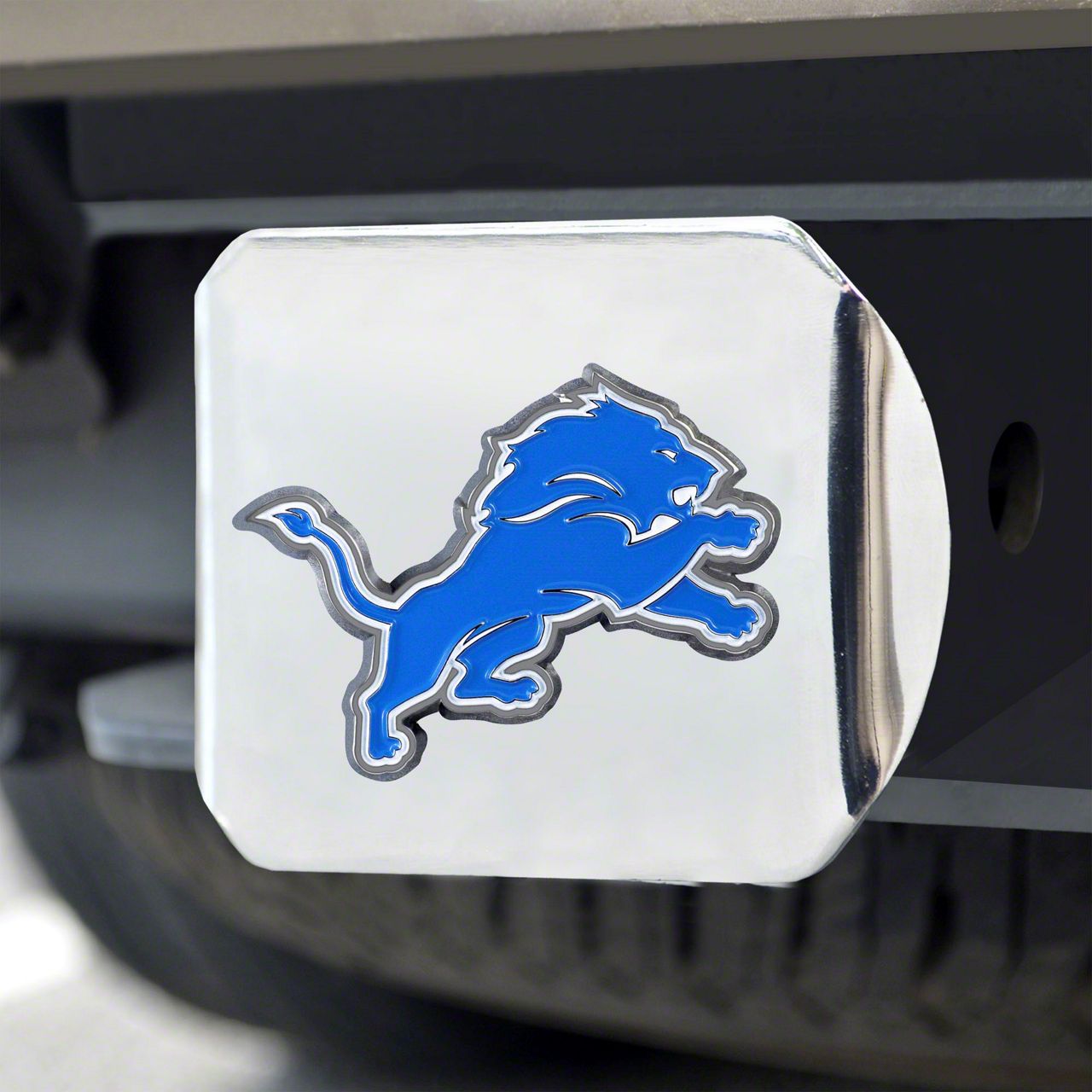 Description. Automotive Accessory; Color Hitch Cover; Chrome; Nfl; Detroit Lions ; 3.4"X4"