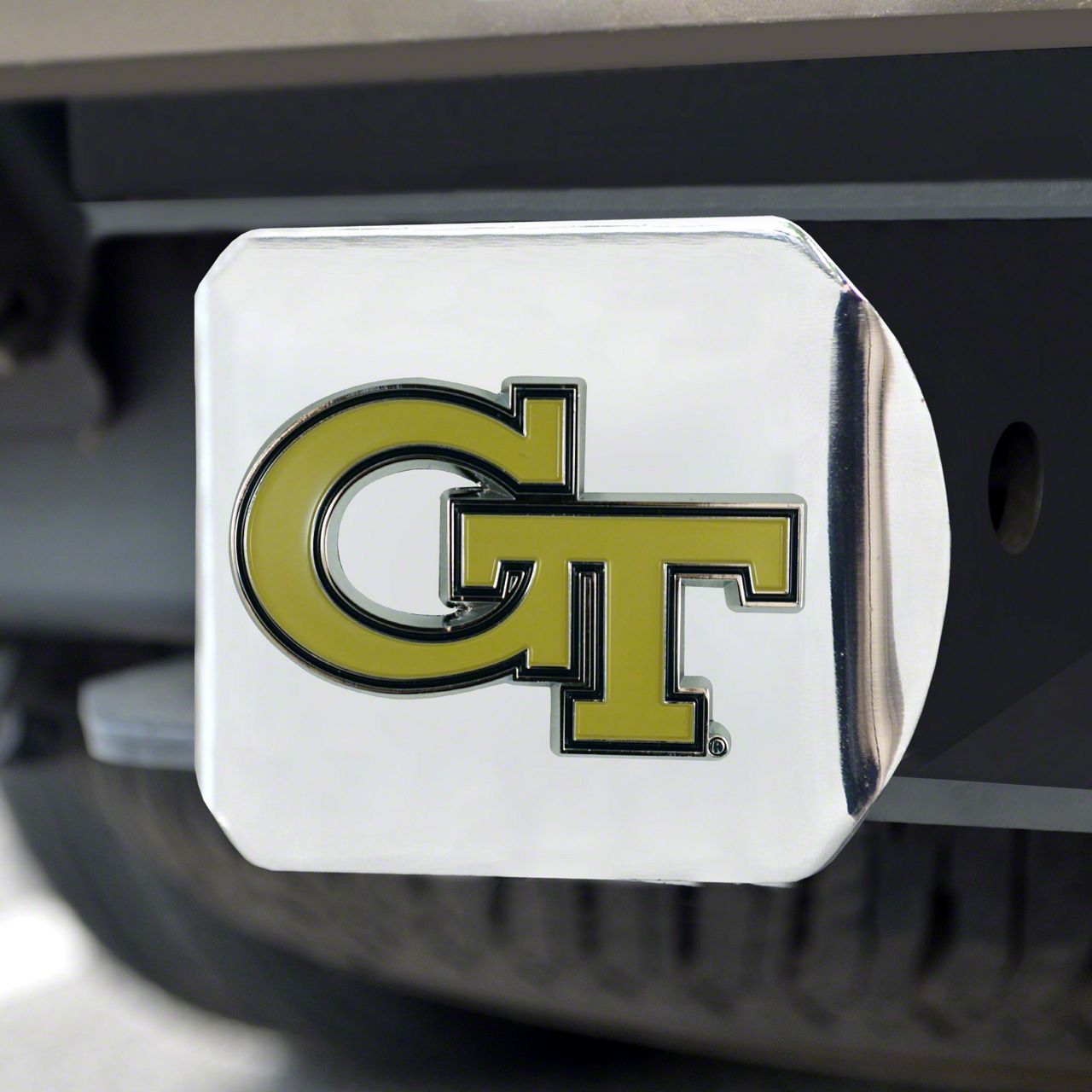 Description. Hitch Cover; Color Hitch Cover; Chrome; Georgia Tech; 3.4"X4"