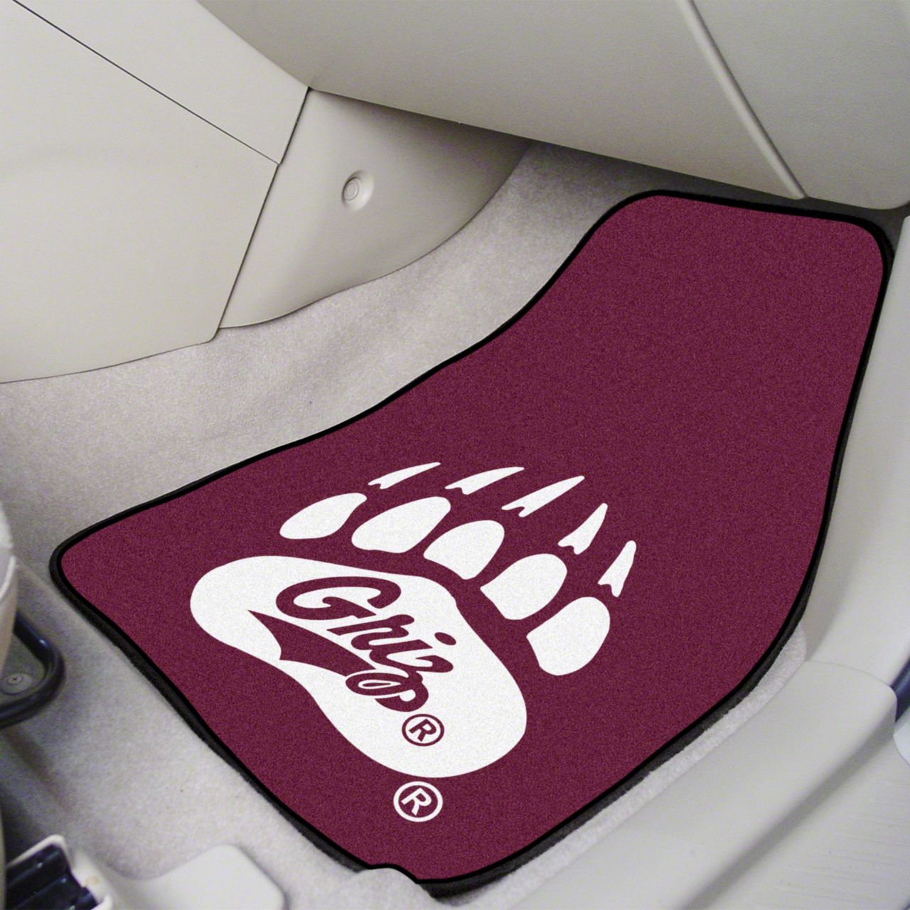 Description. Front Car Mats; 2-Pc Carpet Car Mat Set; University Of Montana; 17"X27"
