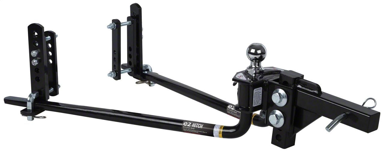 Receiver Hitch. Make your road-trips and towing jobs less stressful with the e2 10K Round Bar Weight Distributing Receiver Hitch with Built-In Sway Control and 2-5/16-Inch Ball. Made for easier movement on the road, this e2 Receiver Hitch features a safe and efficient 2-point weight distributing mechanism that compared to old chain-style hitches makes corner and u turns a breeze.