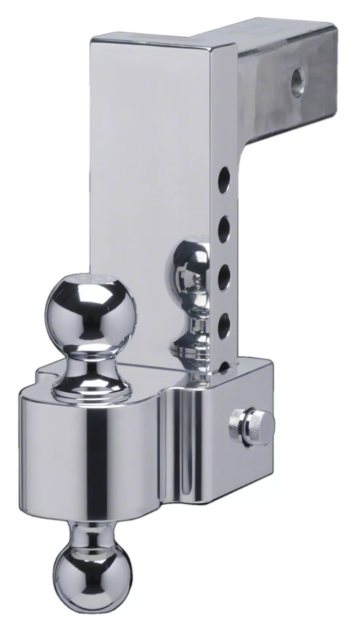 Versatile 8‑Inch Drop/Rise Capability. With an 8‑inch drop or rise option, this FLASH E Series HD 2.50-Inch Receiver Hitch Adjustable Ball Mount accommodates a wide range of trailer-to-tow-vehicle height combinations. Whether towing a low-profile trailer or matching a lifted vehicle, this adjustability ensures optimal towing alignment for increased safety and reduced stress on hitch components.