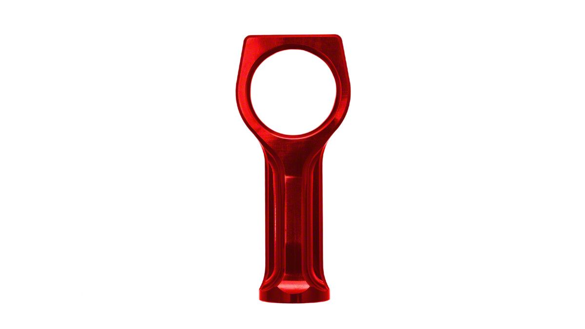 Construction and Appearance. Manufactured from solid aluminum material, this billet dipstick handle is CNC-machined for precise and durable composition. The anodized red finish not only enhances the appearance but also provides additional protection against wear and tear.