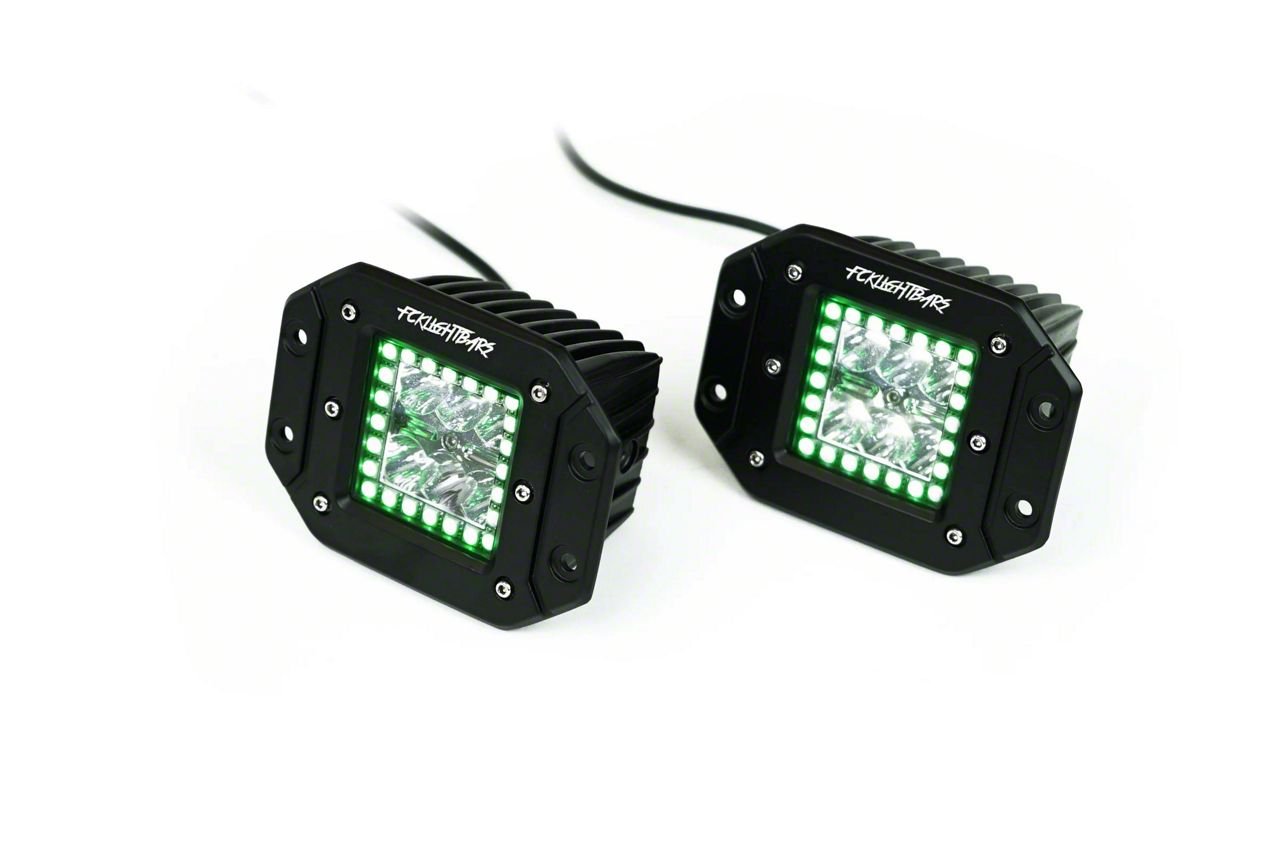 Advanced Illumination Solution. The FCKLightBars LED Light Pods are a compact yet powerful lighting upgrade for any vehicle. Designed with both function and visual appeal in mind, these 3-inch flush-mounted pods feature high-output RGB lights and a dual-mode flood/spot beam configuration. Whether you're off-roading at night or adding stylish accent lighting, this light pod set delivers reliable performance and customization options through a wireless RF remote and Bluetooth app.