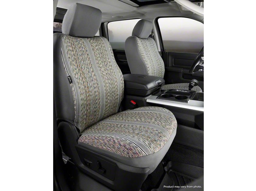 Robust Saddle Blanket Material. Gray Fia Custom Fit Saddle Blanket Front Seat Covers are a great way to clean up, style and protect the factory interior of your 2014-2018 Chevrolet Silverado with front bucket seats, adjustable headrests and side airbags. These gray seat covers provide a nice contrast to the factory black interior and will go a long way in keeping the OEM upholstery clean. The authentic saddle blanket material is durable (great tear resistance), has supplementary padded foam backs and is highly breathable; an ideal choice for owners who spend a lot of time in the front seat of their Silverado.