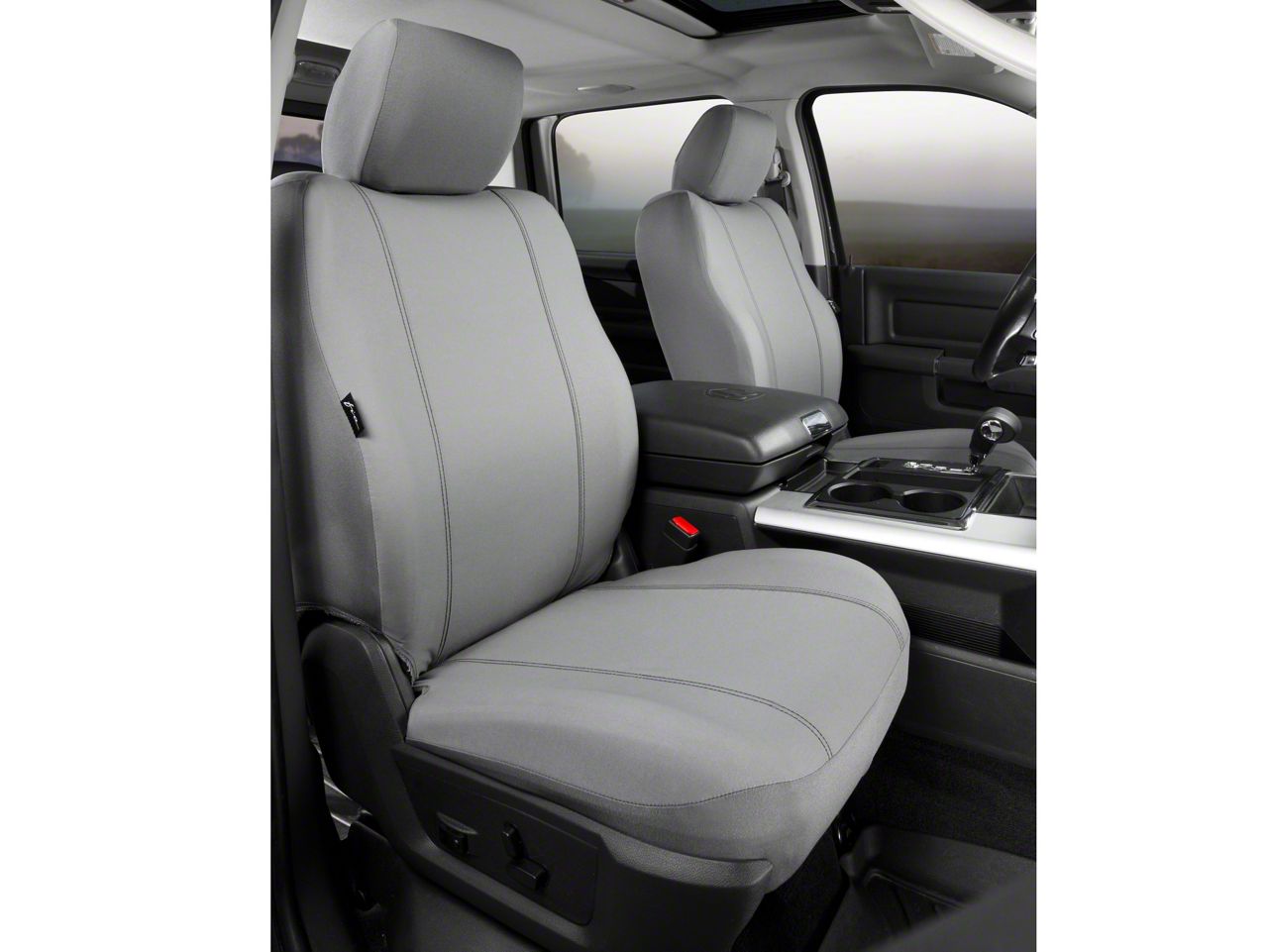Application. The Fia Custom Fit Poly-Cotton Front Seat Covers in gray is specifically designed to fit all 2009 to 2014 Ford F-150 trucks with front bucket seats with adjustable head rests and side airbags.