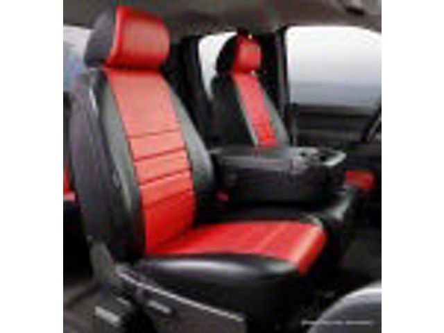 Construction and Appearance. Crafted from soft-touch simulated leather, the Fia Custom Fit LeatherLite Front Seat Cover is both durable and stylish. The form-fit wrap-around design, combined with multidirectional stretch trim, allows the covers to mold to the contours of your seats. The red color adds an elegant touch to your interior, while the materials used are light-fast and color-fast, preventing fading over time. Additionally, these seat covers are hand-washable, making maintenance easy.