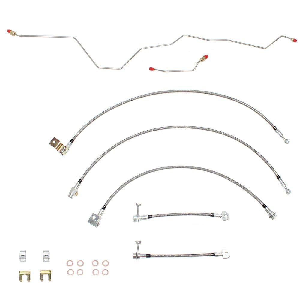 Built to Endure. The Fine Lines Braided Stainless Complete Brake Hose Kit's stainless steel construction provides superior resistance to corrosion, preventing brake line failure due to rust and other environmental factors. This ensures long-lasting performance and reliability, even in harsh conditions.