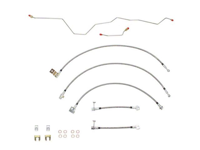 Reliable Brake Performance. The Fine Lines Braided Stainless Complete Brake Hose Kit (Front and Rear) ensures consistent and safe brake performance for your vehicle. Designed for repair and restoration purposes, this kit integrates seamlessly with factory parts, providing a dependable and long-lasting solution.