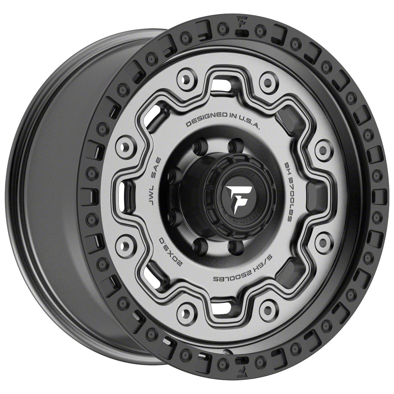 Fittipaldi Offroad FT100 Satin Anthracite with Satin Black Lip 8-Lug Wheel; 20x9; 18mm Offset is a perfect blend of style and rugged design, making it a standout choice for those looking to enhance their vehicle's aesthetic appeal. Its bold, dark metallic finish pairs seamlessly with a wide variety of vehicle styles, offering both modernity and durability. Built by Fittipaldi Offroad, this wheel is designed to elevate your vehicle's appearance with its robust presence.