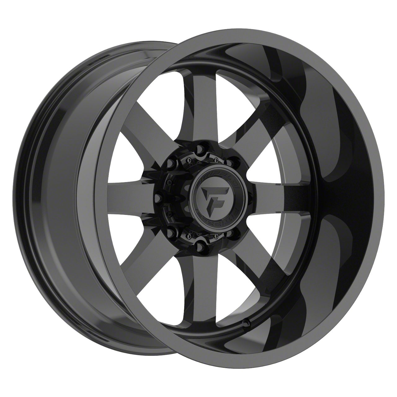 The 22x12 Fittipaldi Offroad FA16 Gloss Black 8-Lug Wheel is completed in a high-quality gloss black finish that will be the envy of everyone. For added protection and good looks, there is a durable clear coat that withstands the rigors of everyday driving,