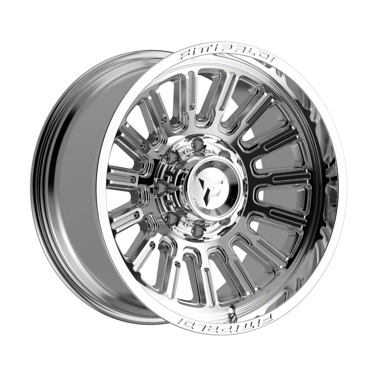 The 20x10 Fittipaldi Offroad FA24 Mirror Coat 8-Lug Wheel is completed in a high-shine mirror coat finish that will be the envy of everyone. For added protection and good looks, there is a durable clear coat that withstands the rigors of daily driving.