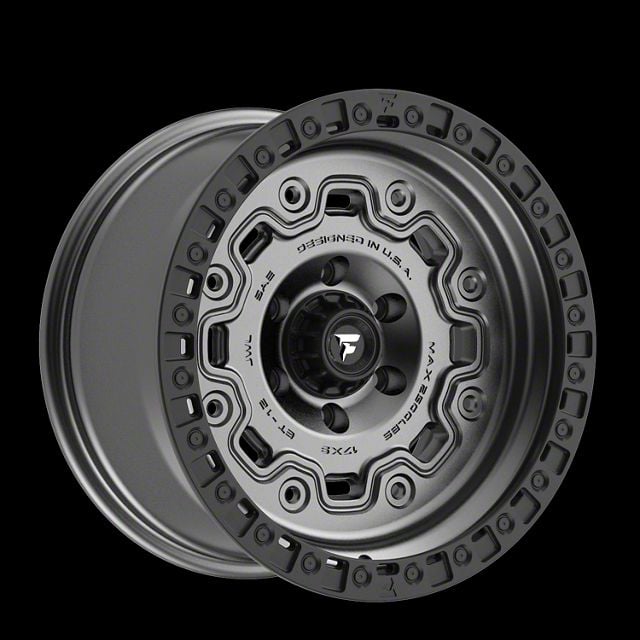 Fittipaldi Offroad FT100 Satin Anthracite with Satin Black Lip 8-Lug Wheel; 20x9; 18mm Offset This Fittipaldi Offroad FT100 Satin Anthracite with Satin Black Lip 8-Lug Wheel; 20x9; 18mm Offset brings a sleek and modern touch to your vehicle with its striking design. Its refined finish and bold styling make it an excellent choice for those looking to enhance their car’s visual appeal. Whether you're aiming for a sporty look or a more aggressive stance, this wheel stands out as a premium addition. Perfect for drivers who appreciate a stylish upgrade.