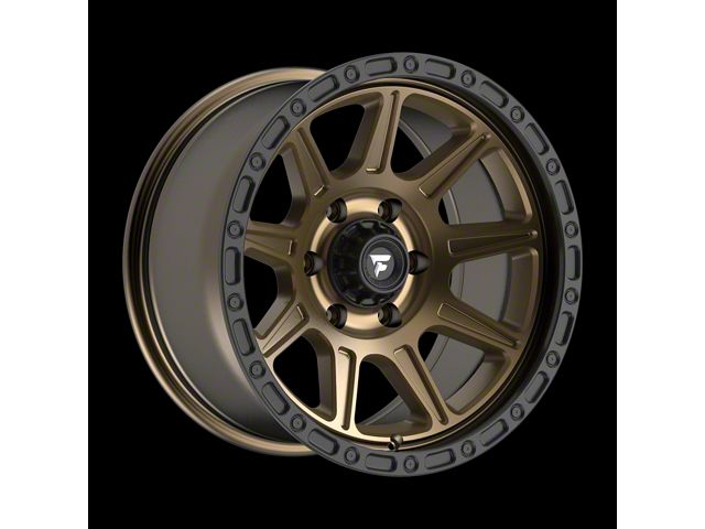 Fittipaldi Offroad FT104 Satin Bronze with Satin Black Lip 8-Lug Wheel; 20x9; 18mm Offset This Fittipaldi Offroad FT104 Satin Bronze with Satin Black Lip 8-Lug Wheel; 20x9; 18mm Offset brings a sleek and modern touch to your vehicle with its striking design. Its refined finish and bold styling make it an excellent choice for those looking to enhance their car’s visual appeal. Whether you're aiming for a sporty look or a more aggressive stance, this wheel stands out as a premium addition. Perfect for drivers who appreciate a stylish upgrade.