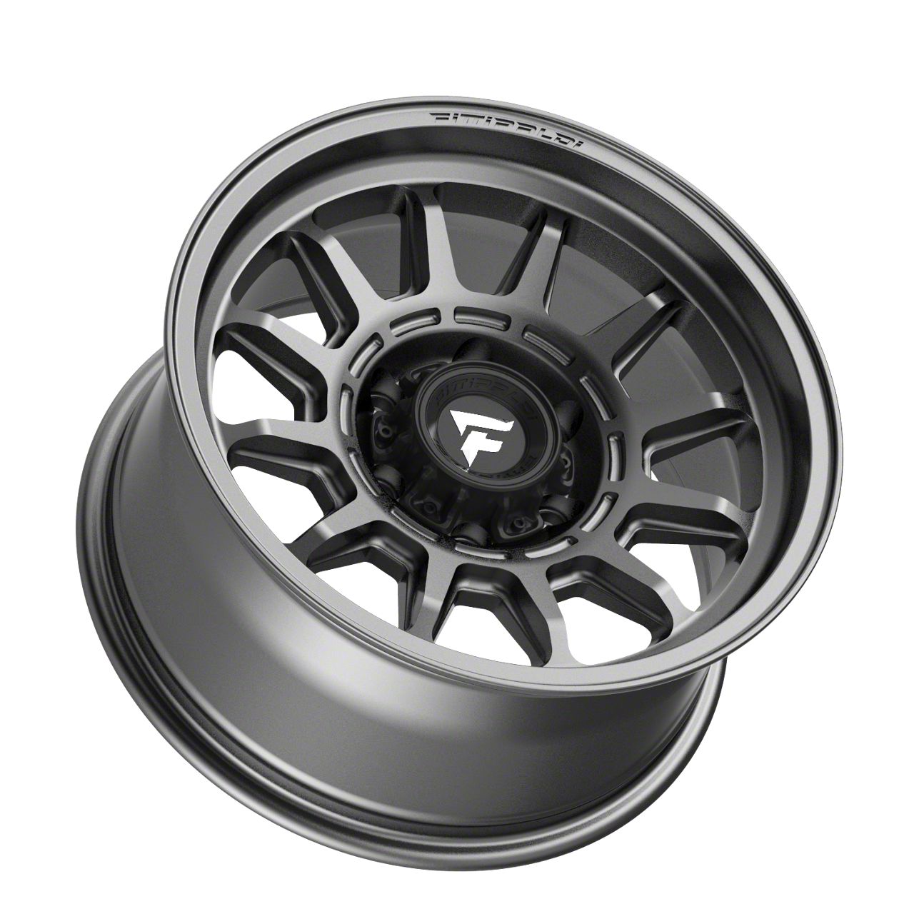 Fittipaldi Offroad FT102 Satin Anthracite 6-Lug Wheel; 17x8.5; 0mm Offset The Fittipaldi Offroad FT102 Satin Anthracite 6-Lug Wheel showcases a blend of race-inspired aesthetics, ideal for those seeking a premium and robust appearance. Its design complements various vehicle styles, adding sophistication.