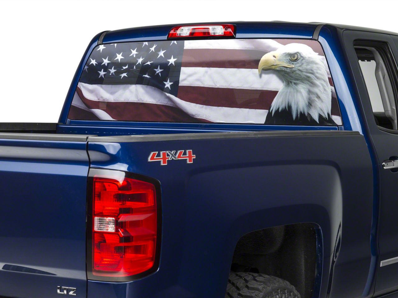 Application. This SEC10 Full Color American Flag and Bald Eagle Perforated Rear Window Decal will fit all 2007 to 2026 Chevrolet Silverado 1500 models. Please note that this rear window decal is designed to be applied to the outside of the glass only.