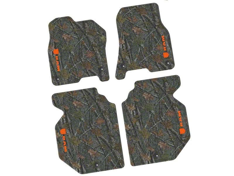 Factory Floorpan Fit Tire Tread/Scorched Earth Scene Front and Rear Floor Mats with Orange RAM Logo and Text Insert; Rugged Woods (19-24 RAM 1500 Crew Cab)Find parts that fit my vehicle