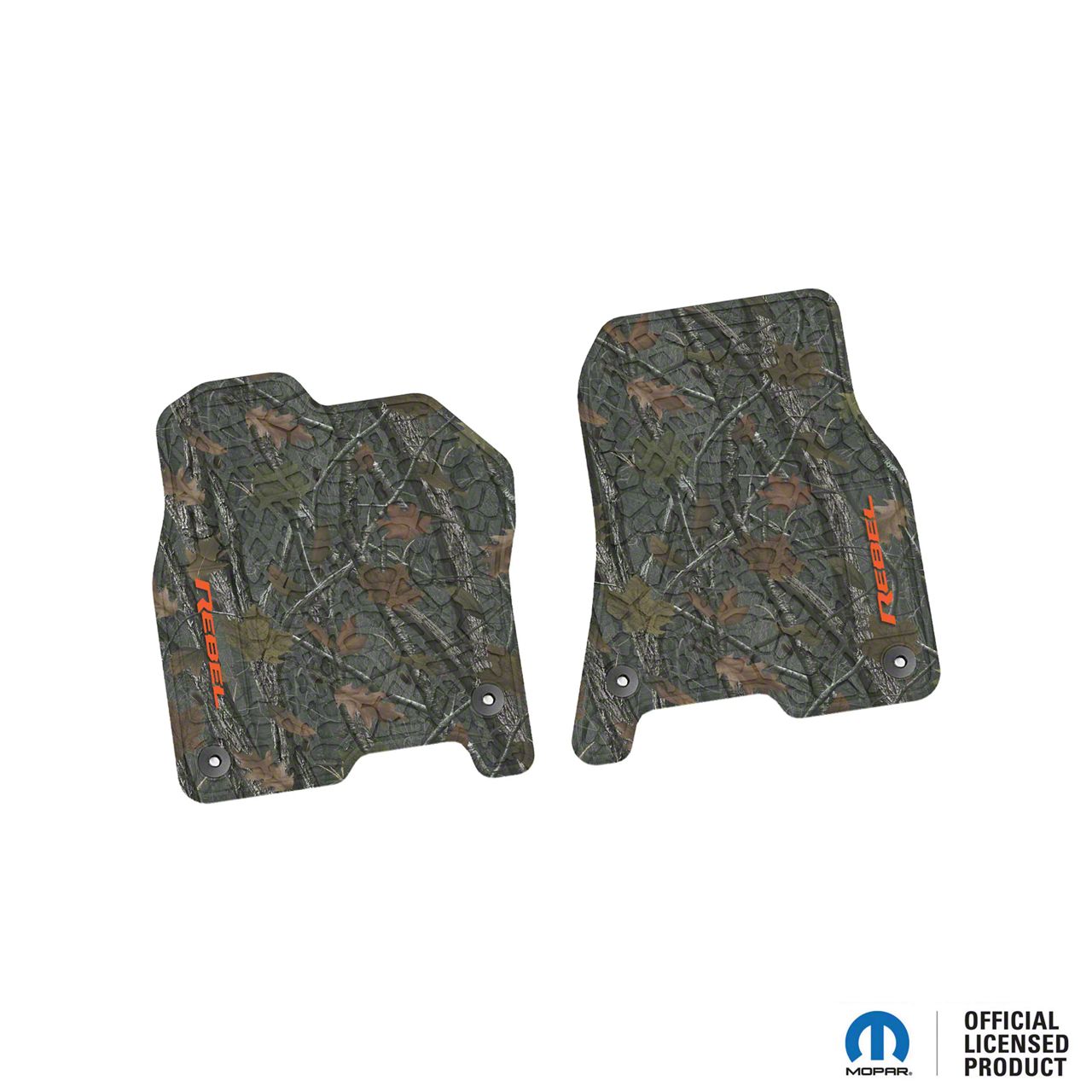 Meticulously Designed Protection. The Factory Floorpan Fit Tire Tread/Scorched Earth Scene Front Floor Mats with Orange Rebel Insert are meticulously designed to precisely fit your vehicle, ensuring an exact fit for your interior. Whether you drive a car, truck, or an off-road vehicle, these mats are your ultimate interior protection. Their purpose is clear: to keep your Dodge RAM 1500's interior looking like new by safeguarding it from stains and wear.