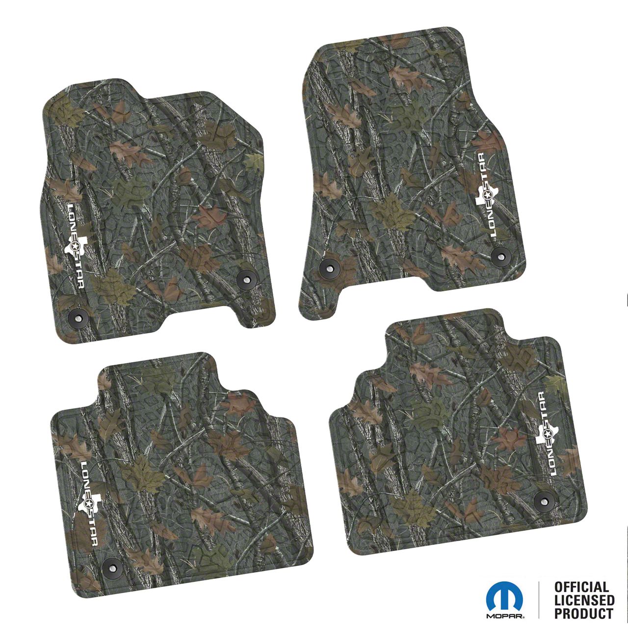 Factory Floorpan Fit Tire Tread/Scorched Earth Scene Front and Rear Floor Mats with White Lone Star Insert; Rugged Woods (19-24 RAM 1500 Quad Cab)Find parts that fit my vehicle