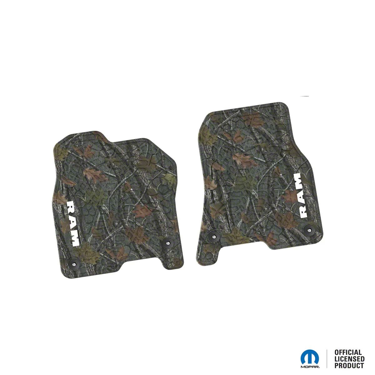 Factory Floorpan Fit Tire Tread/Scorched Earth Scene Front Floor Mats with White RAM Text Insert; Rugged Woods (19-24 RAM 1500)Find parts that fit my vehicle
