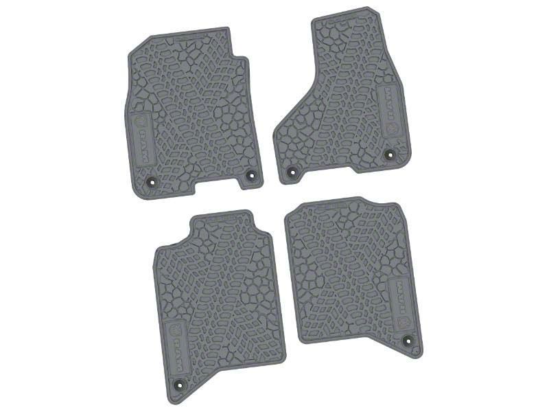 Factory Floorpan Fit Tire Tread/Scorched Earth Scene Front and Rear Floor Mats with RAM Logo and Text Insert; Grey (19-26 RAM 3500 Crew Cab)Find parts that fit my vehicle