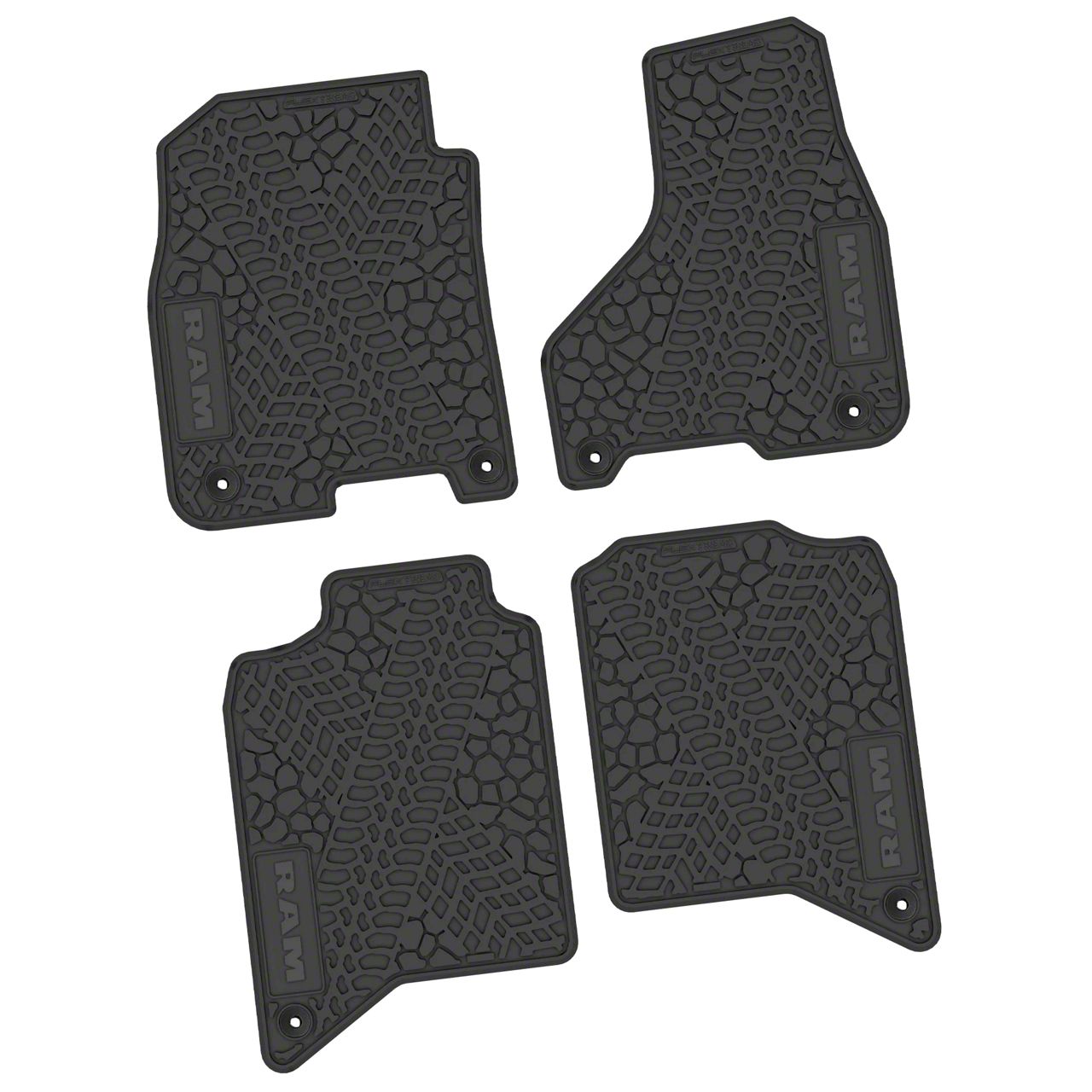Factory Floorpan Fit Tire Tread/Scorched Earth Scene Front and Rear Floor Mats with RAM Text - Black RAM Text Insert; Black (19-26 RAM 3500 Crew Cab)Find parts that fit my vehicle