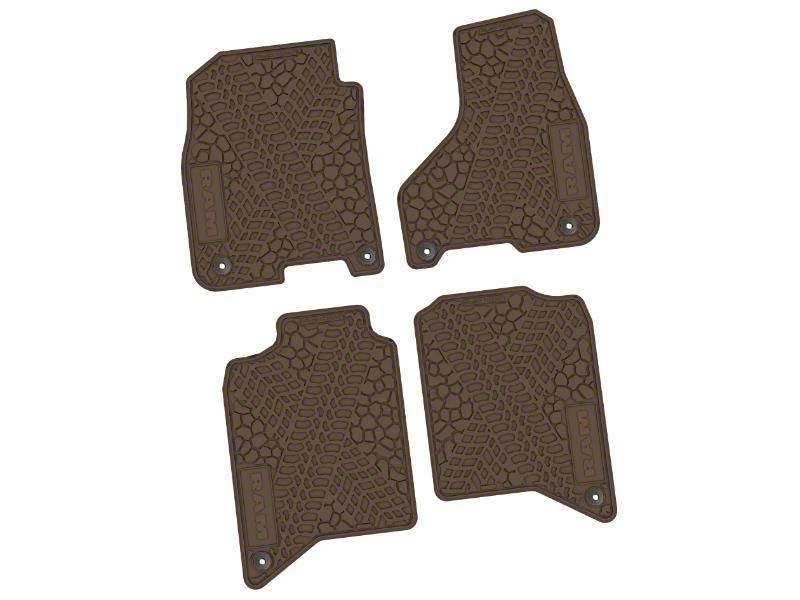 Factory Floorpan Fit Tire Tread/Scorched Earth Scene Front and Rear Floor Mats with RAM Text Insert; Brown (19-26 RAM 3500 Crew Cab)Find parts that fit my vehicle