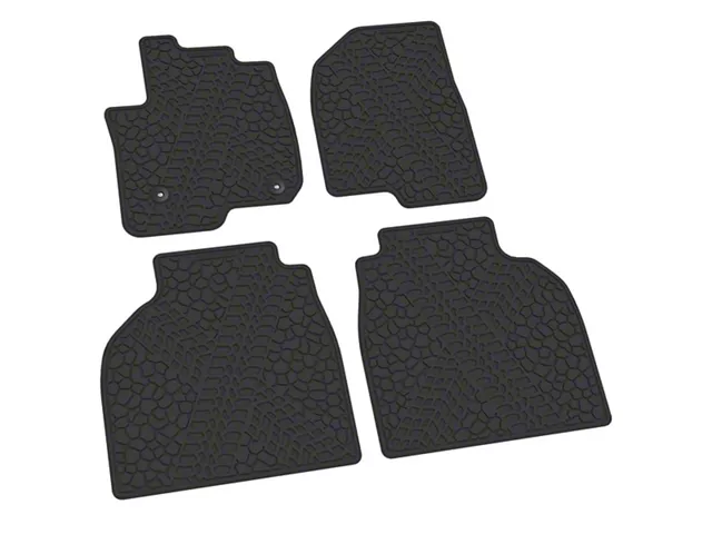 Ultimate Interior Protection. The FLEXTREAD Factory Floorpan Fit Tire Tread/Scorched Earth Scene Front and Rear Floor Mats; Black are meticulously designed to precisely fit your vehicle ensuring an exact fit for your interior. Whether you drive a car, truck, or an off-road vehicle, these mats are your ultimate interior protection. Their purpose is clear: to keep your GMC Sierra 1500 Crew Cab's interior looking like new by safeguarding it from stains and wear.