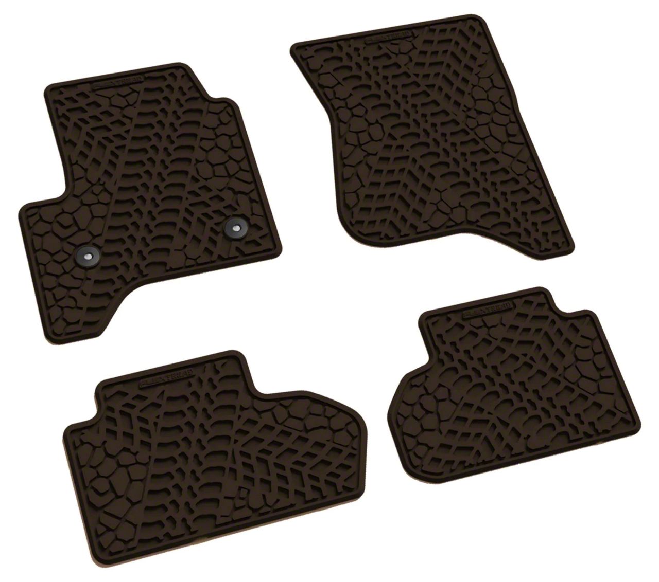Installation. Installing FLEXTREAD Factory Floorpan Fit Tire Tread/Scorched Earth Scene Front and Rear Floor Mats on your vehicle is easy and requires no drilling.