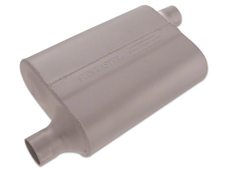 Aluminized Steel Construction. The Flowmaster 40 Series Delta Flow Offset/Offset Oval Muffler - 2.0 in. is the perfect way to add that distinct tone you crave with a quieter cabin. This muffler is made from durable 16-gauge aluminized steel and is completely MIG-welded for maximized strength. The 40 Series Mufflers also don't have any internal packing to blowout.