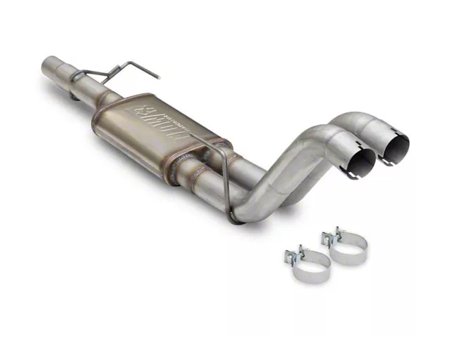 Construction and Appearance. This muffler is constructed from premium-grade 409 stainless steel, ensuring durability and corrosion resistance. The mandrel-bent pipes are designed to optimize exhaust gas flow, enhancing overall performance. The finish is sleek and rugged, perfectly complementing the factory dual exhaust system.