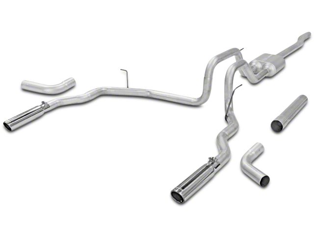 Maximize Your Power. This Flowmaster American Thunder dual rear cat-back exhaust system maximizes your truck engine performance. It won't take your truck to over the top performance levels, but will give you a bit more horsepower and even some added torque. This is possible because your engine will run more efficiently with some help from this kit. Add it to your truck and you'll immediately have performance that you're impressed by. This happens thanks to wider pipes and a more clever exhaust pathway than the standard system that comes with your pickup.
