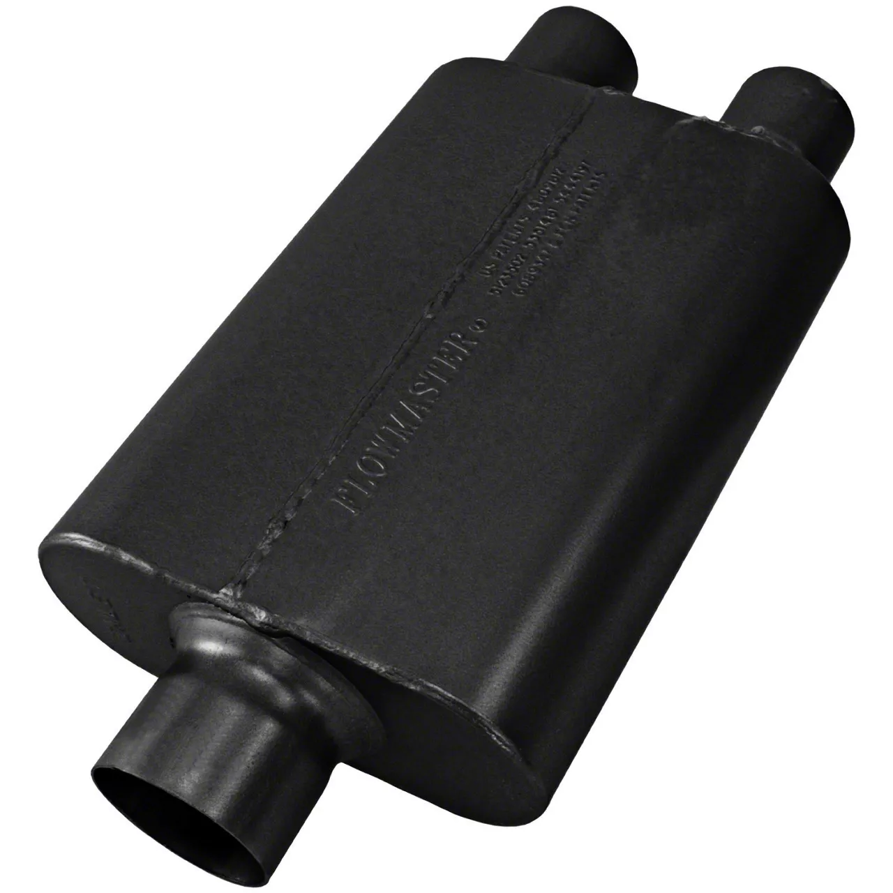 Application. The Flowmaster 40 Series Delta Flow Center/Dual Out Oval Muffler; 3-Inch Inlet/2.50-Inch Outlet offers universal fitment.