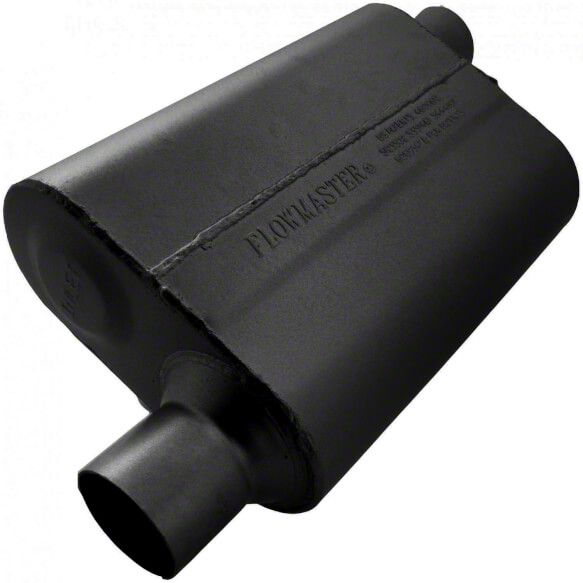 Improved Scavenging. Upgrading to the Flowmaster 40 Series Delta Flow Offset/Offset Oval Muffler could grant you an aggressive new sound and better throttle response out of your F-150. Flowmaster designed this muffler without internal packing and an offset design to improve air circulation and eliminate blowout. In addition, Flowmaster utilizes proprietary Delta Flow technology that improves scavenging to reduce backpressure altogether and increase the performance of your engine. Use this muffler for road or race use.