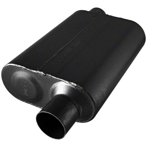 Reduce Internal Noise. Thanks to its clever chambered design, the Flowmaster 40 Series Offset/Offset Oval Muffler ensures less noise affects you when you’re driving. That means no more dealing with the exhaust drowning out conversations or music. Measuring 19 x 4 x 9.75 Inches, the muffler has a 2.50-Inch inlet and standard 2.50-Inch outlet.
