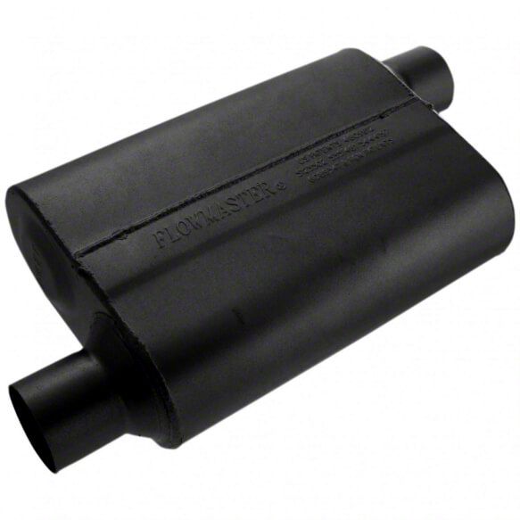 High-Flow Offset Design. The Flowmaster Original 40 Series Offset/Offset Oval Muffler features a fully offset design with 2.5-inch diameter outlets to allow gas to freely circulate without risk of backpressure. As a result, this muffler promises small performance gains for your F-150 to improve your throttle response and acceleration.