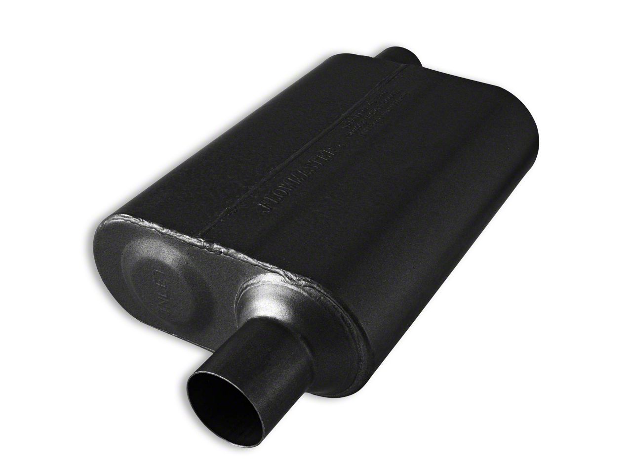 Real Performance. The Flowmaster Original 40 Series Double Offset Mufflers dual-chamber design and offset construction allow the exhaust gasses to flow through the muffler easily with minimized resistance. The delta deflector core sections have been engineered to expertly tune the powerful sound while maximizing flow efficiency. In short, less fuel burned for more time on the road.