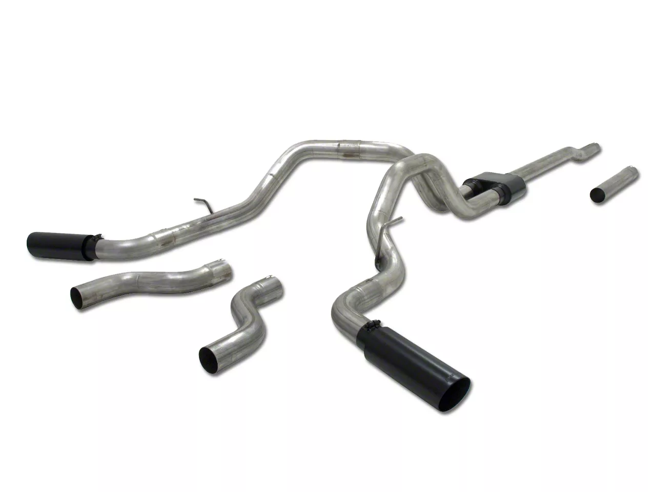Stainless Steel Construction. This exhaust kit features 3-inch stainless steel pipes with dual smooth mandrel Bends. You get the pipes you need to accomplish either a split side or rear exit for your truck. Black ceramic-coated, 4-inch double-walled stainless steel tips add an aggressive, rugged look to your exterior.