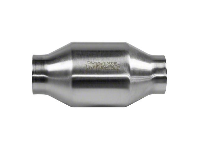 These high quality round catalytic converters are designed to work for a wide variety of universal applications. Features include a compact 4.00-inch diameter x 8.00-inch long spun outer casing for ease of fitment in tight spaces along with High Flow 200 Cell Metallic Substrate for severe-duty/high temperature applications. They feature a 2.25-inch inlet/outlet diameter connections and are intended for customized Pre-OBDII racing applications, and as a "green" solution for vintage hot rods or vehicles that did not originally come equipped with catalytic converters from the factory. These are Not intended to meet on-highway compliance programs and are Not Legal for Sale or for Use in California. Also, may Not be Legal in States that follow CARB regulations.