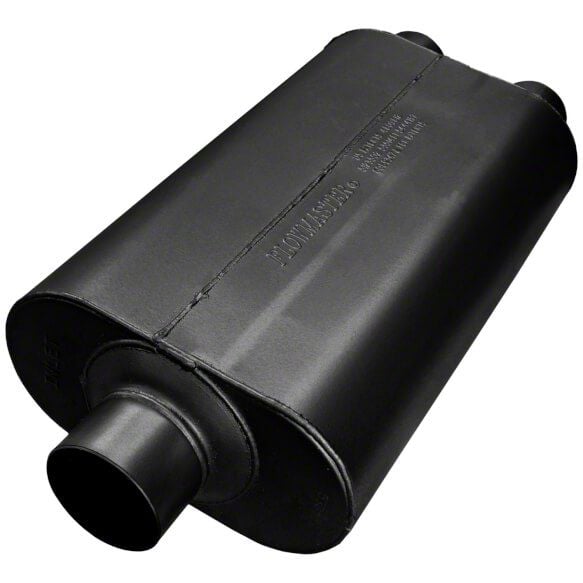 Moderate Exhaust Sound. This Flowmaster 50 Series HD Center/Dual Out Oval Muffler; 3-Inch Inlet/2.50-Inch Outlet is perfect for modified RAM 1500s. Its chambered design is engineered to deliver a moderate tone with a mild interior resonance that never fails to attract attention each time you step on the pedal.