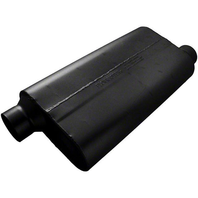 The 50 Series Big Block muffler is made for more than just big cubic-inch engine applications. Its larger case size with an internal tuning chamber provides mileage and power gains along with maximum sound control for a quiet interior tone, even under heavy loads. Well suited to heavy-duty vehicles such as full-size trucks, SUVs, RVs, and tow vehicles. Constructed of 16-gauge aluminized steel and fully MIG welded for maximum durability.