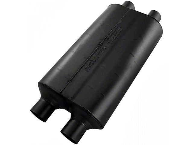 The Super 50 series muffler is a larger version of Flowmaster's 50 series Delta Flow® muffler. Originally designed for trucks and SUVs, it also excels in muscle car and high-performance applications. The larger case size significantly reduces interior resonance and provides a deep, rich tone along with mileage and power gains. Constructed of 16-gauge aluminized steel and fully MIG welded for maximum durability.
