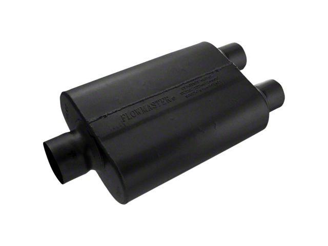 Application. The Flowmaster Original 40 Series Center/Dual Out Oval Muffler; 3-Inch Inlet/2.50-Inch Outlet fits Universal; some adaptation may be required.