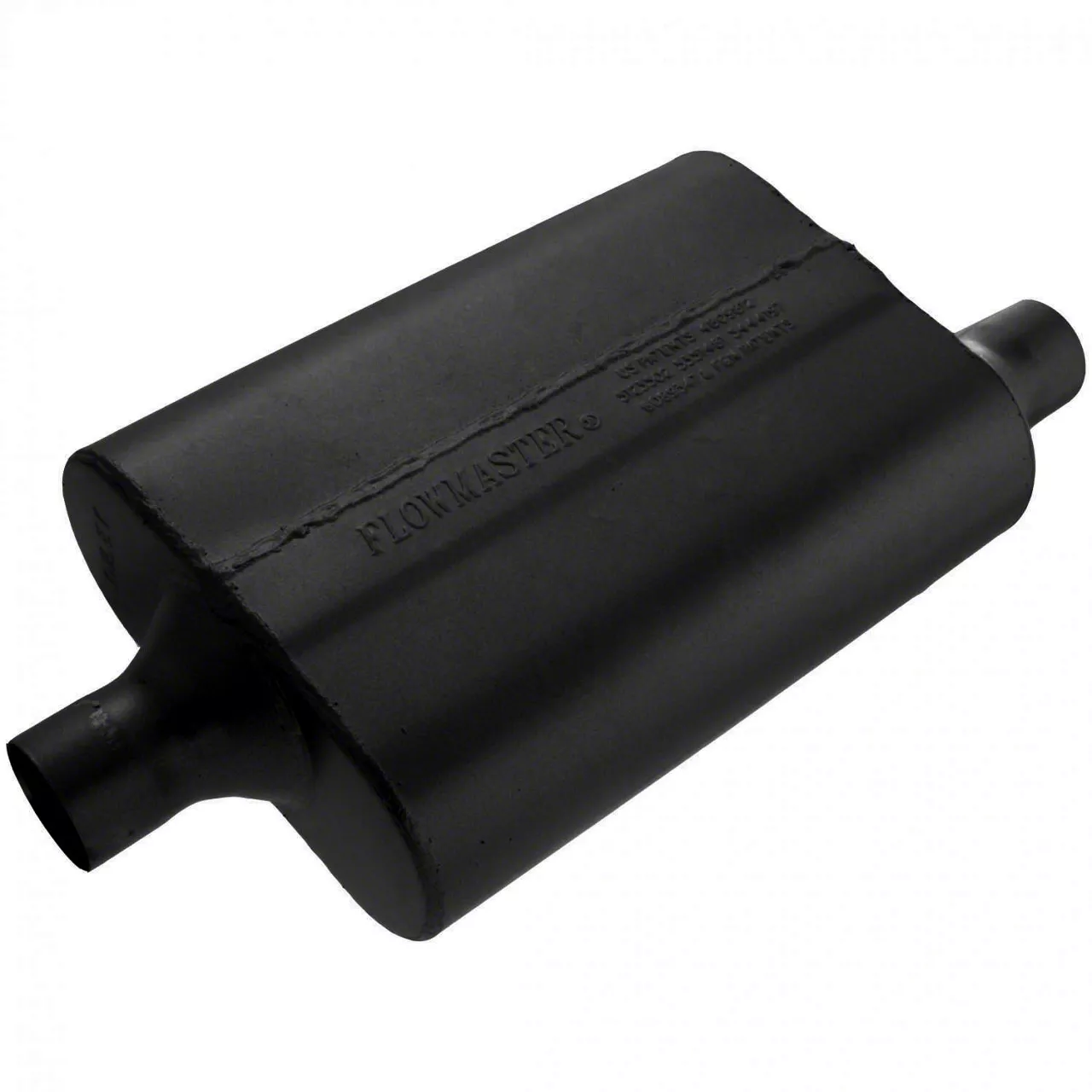 This two-chamber design incorporates Flowmaster's Delta Flow® technology. The Delta deflectors generate increased scavenging for better performance and reduced interior sound. Enjoy a milder exterior tone and reduced interior resonance compared to the standard 40 series. Constructed of 16-gauge aluminized steel and fully MIG welded for maximum durability.