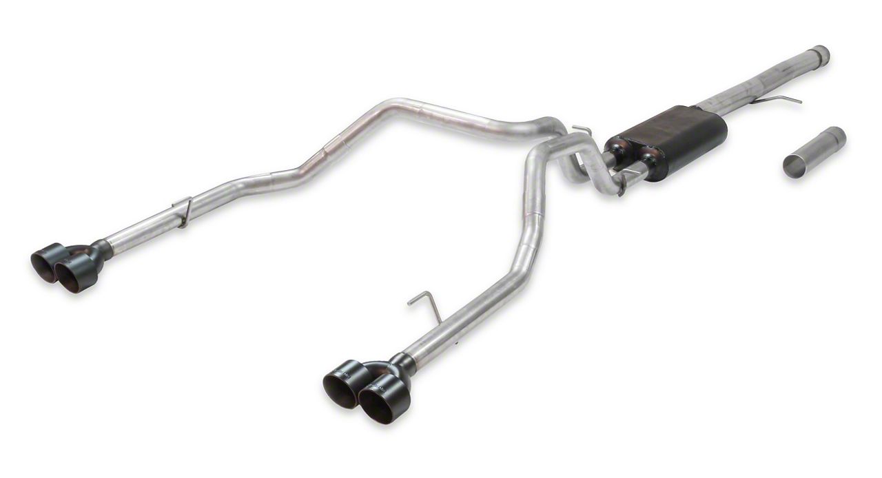 Moderate to Aggressive Sounds. This Flowmaster American Thunder Dual Exhaust System with Black Tips and rear exits is specially designed to give the Sierra 1500 a classic moderate to aggressive rumble. Additionally, the interior resonance is mild, perfect for long drives.