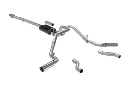 Loud and Aggressive Sound. If you want to catch the attention of everyone as you drive, then equip your truck with this Flowmaster American Thunder Dual Exhaust System with Polished Tips. This exhaust system comes with a reflection muffler type that allows your truck to create a loud and aggressive sound.