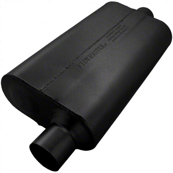 Meticulous Steel. Enhance the performance and sound of your vehicle with the Flowmaster 50 Series Delta Flow Offset/Center Oval Muffler. This muffler is designed for universal use and features a 2.50-inch inlet and outlet size, making it compatible with a wide range of vehicles. Meticulously crafted from top-grade steel, it ensures durability and long-lasting performance.