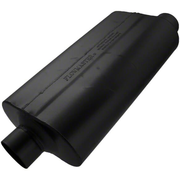 Get The Power You Need. The Flowmaster 50 Series HD Offset/Center Oval Muffler's chambered design ensures it maintains a moderate exterior sound while reducing interior resonance. However, it's the power gains that make this muffler so impressive. You'll notice marked improvements to torque and horsepower when you put your foot down. Couple that with the improvements to fuel efficiency compared to your factory muffler, and you have the ideal replacement part.