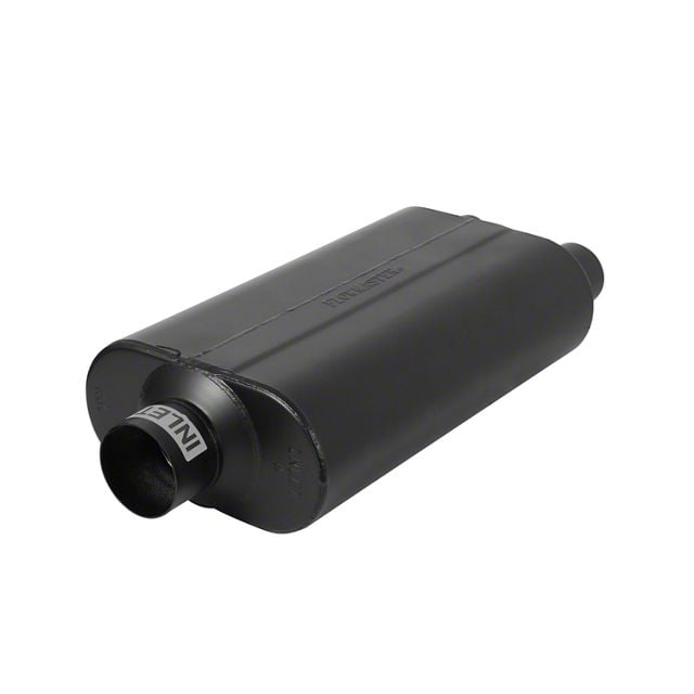 The Super 50 series muffler is a larger version of Flowmaster's 50 series Delta Flow® muffler. Originally designed for trucks and SUVs, it is also well suited to muscle car and high performance applications. In addition, the larger case size significantly reduces interior resonance and provides a deep, rich tone along with mileage and power gains. Constructed of 16-gauge aluminized steel and fully MIG-welded for maximum durability.