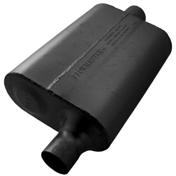 Sound and Efficiency. Replace your old and failing muffler that has been causing you problems in gas mileage and has been emitting weird noise with the Flowmaster 40 Series Delta Flow Offset/Center Oval Muffler with a 2-Inch Inlet/2-Inch Outlet. This muffler delivers an aggressive and loud muffler sound while also taking care of your fuel economy.