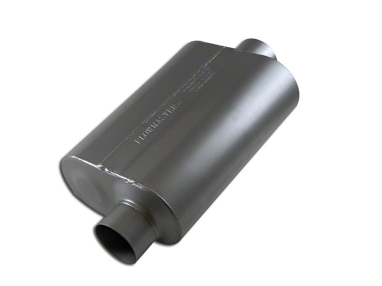 Aggressive Exhaust Note. If you are looking for performance and an aggressive street sound from your muffler, look no further than Flowmaster's Super 40 Series Offset/Center Oval Muffler. This muffler is loud, aggressive and unapologetic. Perfect for your performance vehicle or making your F150 sound like one. This muffler used Flowmaster's Delta Flow technology to give you aggressive sound outside of the vehicle but a livable growl inside so that you can drive in comfort while making a statement.
